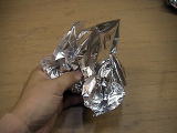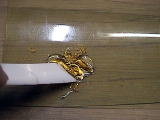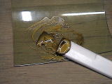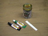 3) 金繕い風補修(安くて簡単!) お気に入りの作品がカケちゃいました・・・。補修して使いませんか? 新潟県中越大震災の影響で私の作品もかなり被害を被りました。大物作品や、普段使いにしていた器でもなかなか捨てられない物も結構あり、補修をすることにしました。名のある名品などであれば専門の方に『金繕い・金継ぎ』と呼ばれる方法で修繕してもらい、更にはそれを景色としても楽しむところですが、そんな贅沢はできません。・・・そこで、安くてそこそこ”それ風”に見える金繕い風の補修を自分ですることにしました。