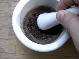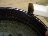 2)素焼きの秘策 →こちらを御覧ください。 【 下絵付け 】 (目次) 1) ベンガラ(弁柄) 1) ベンガラ(弁柄) 私なかなか物が捨てられない性格でして。。。 つい「何かに使えるかも。」とか思っちゃうんですよね。 この冬 何十年ぶりの大寒波で 『使い捨てカイロ』なるもののお世話になりました。 これが使い終わっても捨てられないんですね。(笑) ふと思ったんですが、『使い捨てカイロ』って鉄分が酸化するときの発熱を利用しているんですよね。 ってことは使い終わって捨てる時の状態ってのは酸化鉄のかたまりってことですよね。絵付けに使うベンガラも酸化第二鉄・・・って同じじゃないですか! 一応成分書きを見ると多少の塩分やらなにやらが混じっていますが、雑味も”あじ”の素ですから。。。などと自分に言い聞かせて使って見ることにしました。
