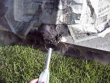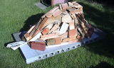 芝生の跡を見ると熱はブロックで防げていたようですが煙によるダメージが大きかったみたいです。 |