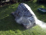 こうなる前に窯の表面が乾いてきたらジョウロで水をかけてぬらしてあげます。最初は霧吹きでやってみましたが追いつきませんでした。 |