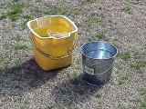 ・ブリキのバケツに水・・・焼き終わった作品の冷却用。 |