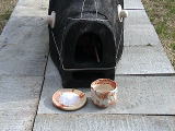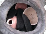 ・・・なんでフタが白いかって?実はフタだけ強度アップのために電気窯で焼き直ししたんです。そしたら本来の道具土の色になりまして・・・。真っ黒クロスケ窯がパンダ窯になってしまいました。 |