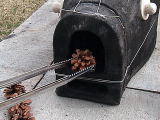 ・燃焼室に炭と松ぼっくりを詰めた様子です。 |