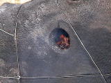 ・燃焼室の色見穴の隙間からゆらゆらとした炎が漏れてきました。