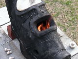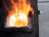 ミニ窯名物!お約束の火の粉噴き出し画像です!