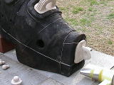 しかし補強用の針金が施してあるため安心です。 あとで確認しましたが、ヒビは内側までは達していませんでした。(ホッ) |