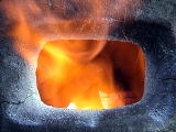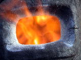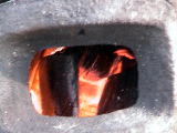 ・焼成室のフタからもれる火の色はまだまだ1000℃までも達していません。 |