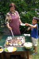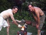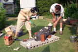 '05-8-16作成友人のドミニクさんとは以前からこんど一緒にミニ窯を焚こうと話していました。 ようやくお互いのスケジュールが合い、7/17(日)にミニ窯パーティーを開くことになりました。 民芸をこよなく愛するアメリカ人陶芸家のドミさんはもうすぐパパの新婚さんです。(おめでとー!) 我家の家族とドミニク夫妻、そしてドミニクさんを訪ねて来日中のジェフさん(アメリカの人気陶芸家)を招いてのなんともにぎやかなミニ窯パーティーとなりました。 |