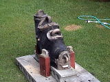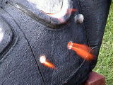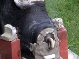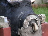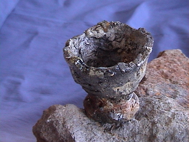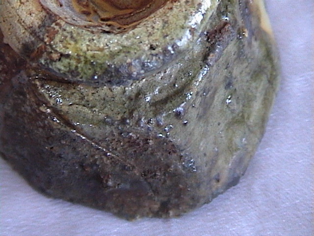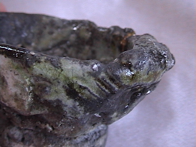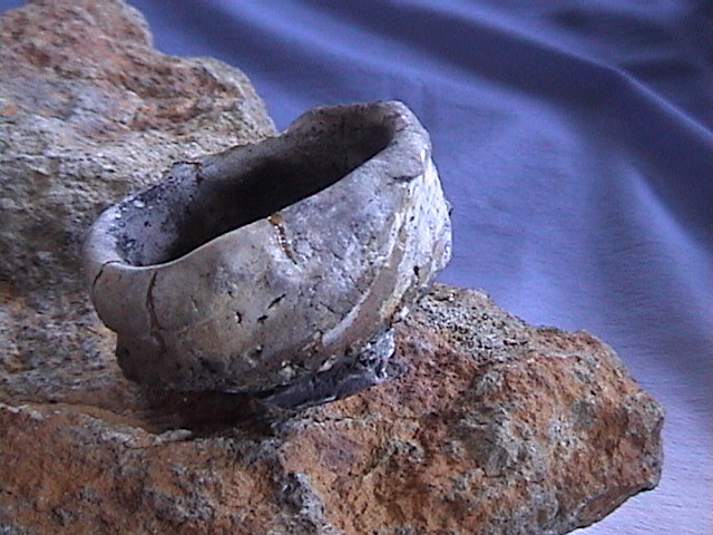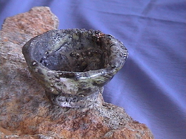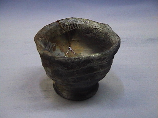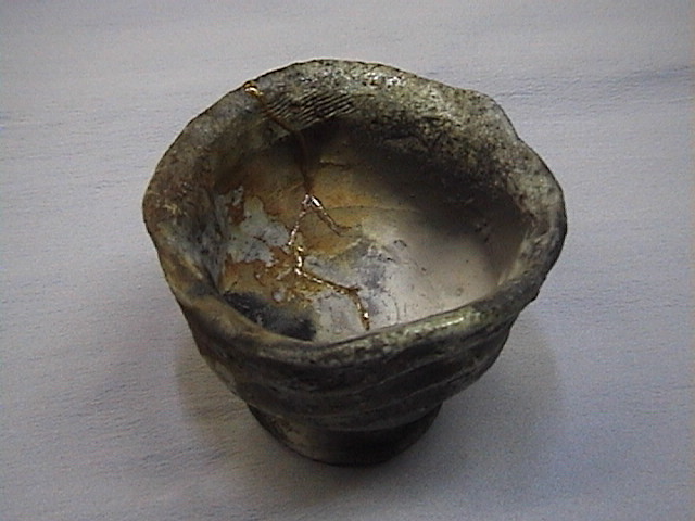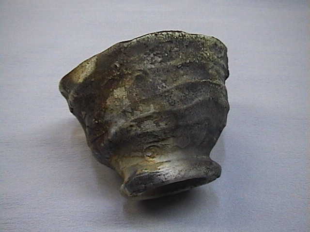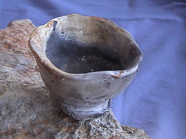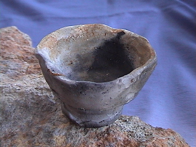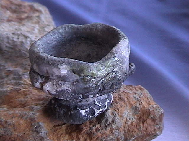 '05/7/24(日) ![]() 私も今回はドミさん、ジェフさんに倣って凹凸の変化を持たせた作品スタイルを心がけた作品を準備して彼らの訪問を待ちます。 10:00 先週よりも早い集合。各自思いを込めて制作した作品を持ち寄っての再会です。 楽しかった先週の話もそこそこに今日焼く作品のお披露目、そしてカセットコンロで乾燥〜素焼きの開始です。 素焼きの準備をしながらドミさんの通訳で今日の打ち合わせ。 【今回の狙い】 ・とにかく高温で長時間引っ張りたい。 →炭をカートンで持参してきてくれました。(マングローブ炭6kg×3箱で18kg!) ・炭化をやりたい。 →ガーデニング用のバーク(松の樹皮)とおが屑も持参です。 最後の窯の目止めは『吉田式』の濡れ新聞紙で覆う方法もあるが、今回は道具土を使うことにしました。 ![]() ハンマーで手際良く炭の大きさを整えはじめるドミ&ジェフさん![]() 素焼き上がりまでの時間に今日も写真をパチパチ。12:00 乾燥・素焼き終了。 12:30 窯詰め終了。窯詰め担当ドミさん、合計10個のぐい呑みを道具土使いながら無駄なく詰めてくれました。 そして、いつものように御参りしてから着火です。 13:00 炭火がしっかり熾きたところで、お昼にありつきます。(我家の女性陣に感謝!) ビールでカンパイ!本日初めてのアルコール(笑) ザルそばとザルうどん、どちらもお口に合ったようで良かった良かった。 お昼の後はブロワ−に切り替え。![]() ![]() ![]() ![]() 炭もドンドンくべて一気に温度を上げていきます。 ![]() ![]() ![]() ミニ窯大奮闘中!!! 炉内温度1200℃はゆうに超えています。 ![]() ![]() ![]() ![]() ![]() 煙突からも勢いよく炎が上がってきています。ここから更に30分くらい引っ張ります。 17:30 送風ストップ。バーク(松の樹皮)とおが屑を投入!すぐに全てのフタを閉めますが、めらめらとした炎と黒い煙が立ち上がりました。 ![]() ![]() ![]() すかさず連携プレーで全てのスキマを道具土で塞ぎます。煙も炎もシャットアウト! 本来ならばこのまま中の火が無くなるまで待つのですが・・・。 やっぱり今日のうちに窯出しして作品を見たい! ・・・ということで、18:00 窯出し敢行〜! 窯の中にホースで水を入れて消火。ペーパーキルンをした時の記憶がよみがえります。。。 (ペーパーキルンで素焼きしたときに水をかぶっても平気だったこの窯、水を入れても大丈夫かな?ちと不安・・・。) 窯出し無事完了。 ちょっと黒過ぎの仕上がりになってしまいましたが、灰もたっぷり被って溶けて重厚感のある作品が採れました。 今回 マングローブ炭約15kgを消費。 焼成時間 約6.5時間 でした。それでは焼きあがったぐい呑みでカンパイ! この作品鑑賞の至福のひと時を過ごすために何時間もかけて焼くのかもしれませんね。 ジェフさん、よい思い出となったでしょうか? 来年の再会を約束して、名残り惜しくも解散です。 【 今回の教訓 】 ・焼成時間長く、炭もたくさん使ったため、重厚感ある作品が採れました。場所によっては今までに無くしっかり焼締っています。 ・反面、作品のヒビも多く出ました。『こわざ』の金繕いが活躍しました。 ・道具土での密閉はかなり有効。 ・今回くらいのスケジュールで暗くならないうちに焼成を終えると炎や火の粉が目立たずにいい。(イベントとしては×ですが) ・2段重ねで窯の下に敷いたブロックは芝生保護に有効でした。 ・後日談 ・・・窯を片付けようと持ち上げたところ、”パックリ” 焼成室と燃焼室の境目くらいのところで胴体が割れてしまいました。 思った以上に水を吸ってしまっていたようです。そっともとに戻して乾燥後、針金で補修しました。まさに満身創痍の姿です。 次回様子を見ながら使って見ます。 →やっぱり水はミニ窯の大敵! 【 今回の作品紹介 】